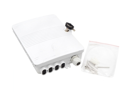 La caja de distribución con cerradura ofrece la capacidad de terminar 8 fibras alojadas en un gabinete de PC+ABS resistente y robusto para aplicaciones en interiores y exteriores.