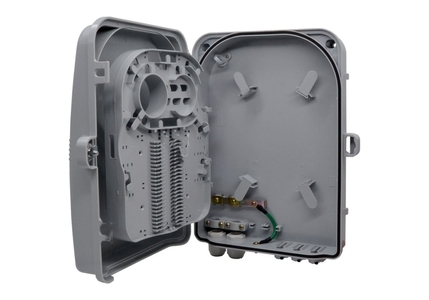 La caja de distribución con cerradura IP65 y resistente a los rayos UV se suministra descargada como estándar y ofrece la capacidad de terminar 24 fibras alojadas en una carcasa de ABS resistente y robusta para aplicaciones en interiores y exteriores. Una bandeja interna desmontable proporciona una solución limpia y ordenada para alojar 24 conexiones y empalmes SC simplex. La caja tiene 24 puntos de salida de latiguillos y hasta 2 puntos de entrada de cables que mantienen la clasificación IP65.